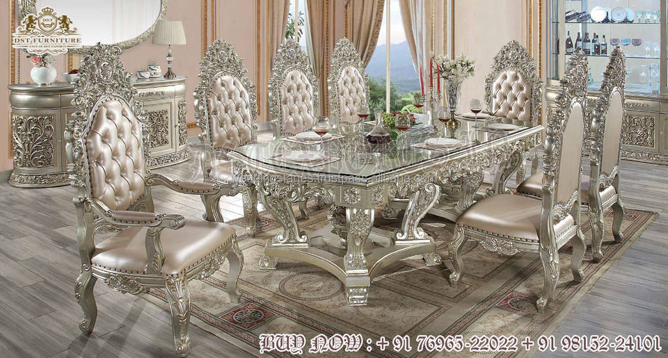 Table à manger style italien rubis rouge table à manger classique or polonais 8 places meubles de salle à manger de luxe en bois de teck