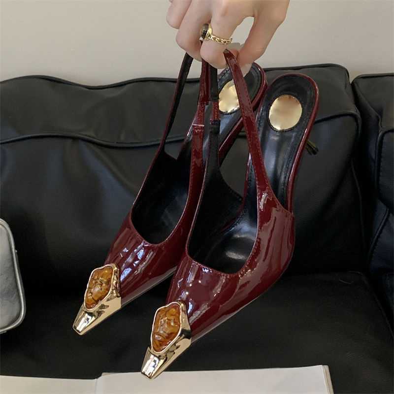Sandales italiennes sur mesure pour femmes, à bout pointu, avec détails métalliques creux et pierres précieuses, élégantes, pour jeunes femmes, à talons hauts