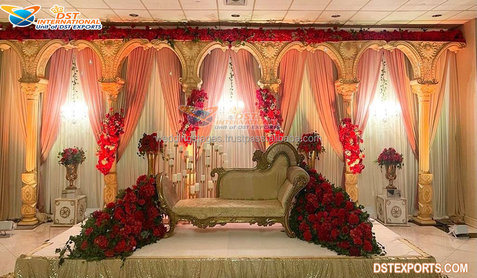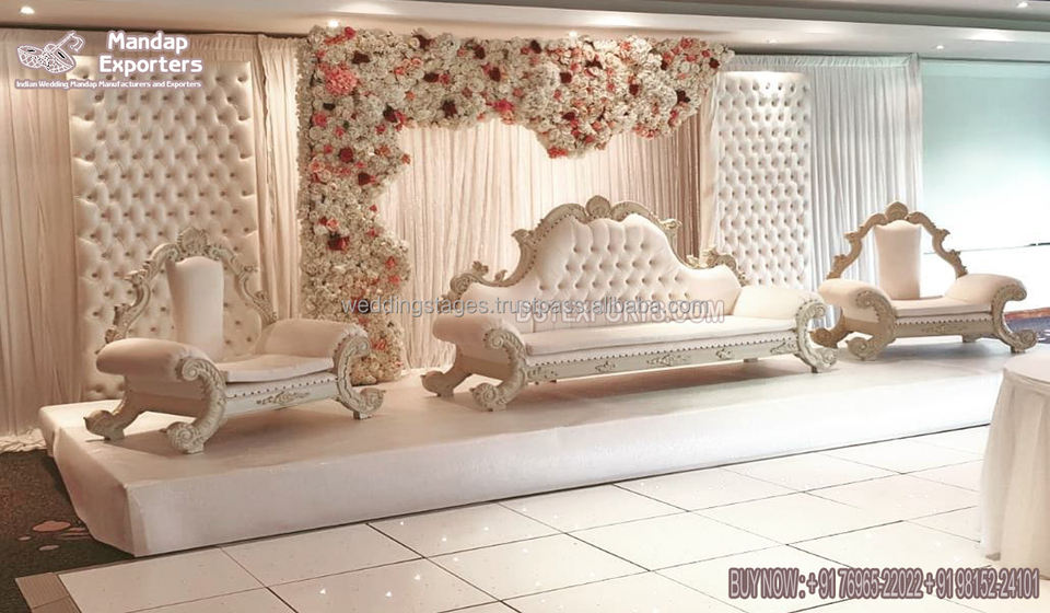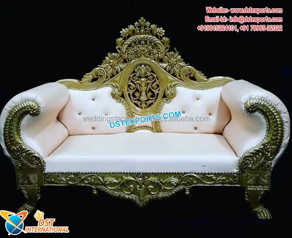Causeuse moderne en bois de teck pour mariée, marié, vente en gros de canapés personnalisés pour mariage, en argent doré