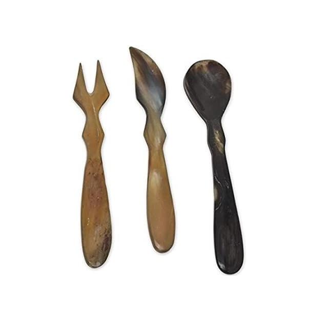 Ensemble de couverts en corne de style italien, facile à nettoyer, ensemble de cuillères personnalisées, fourchette et spatule en corne véritable pour hôtels et restaurants