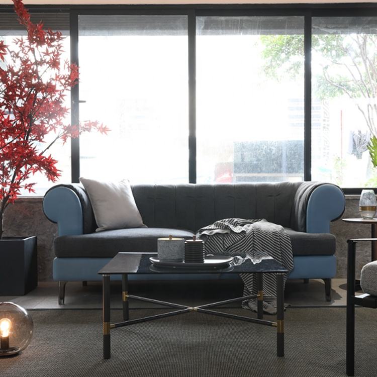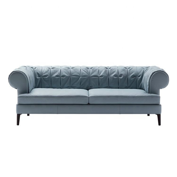 Canapé moderne carré italien pour salon, en cuir bleu ciel, canapé 2 places et 3 places pour appartement et hôtel