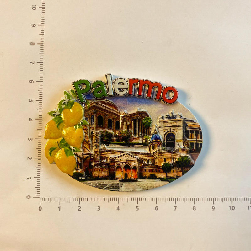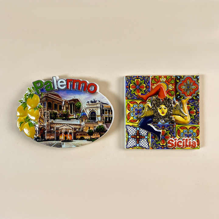 Italy Sicily & Palermo Creative Resin Fridge Magnets-Durable Traditional Tile Pattern & Local Landmark Travel Souvenirs