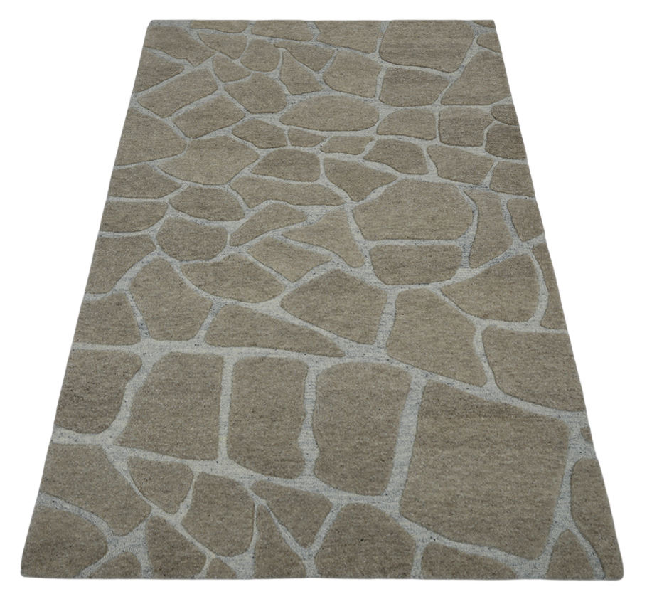 Tapis en laine écologique tufté à la main à motif pavé moderne beige ivoire et gris pour le salon à la maison