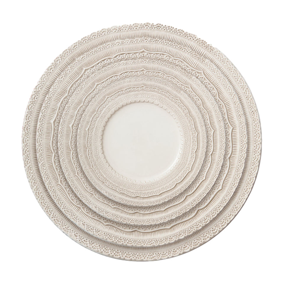 Service de vaisselle en céramique ivoire, assiettes en porcelaine à dentelle en relief, assiettes à dessert crème pour boutique, cadeau, décoration intérieure, ou cadeau de pendaison de crémaillère