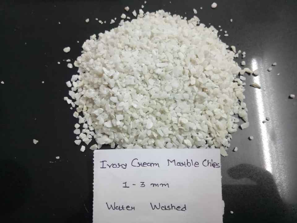 Copeaux de marbre crème ivoire 3-6 mm, écologiques, durables, texture murale, granulats, design extérieur, jardin, construction extérieure, pierre concassée
