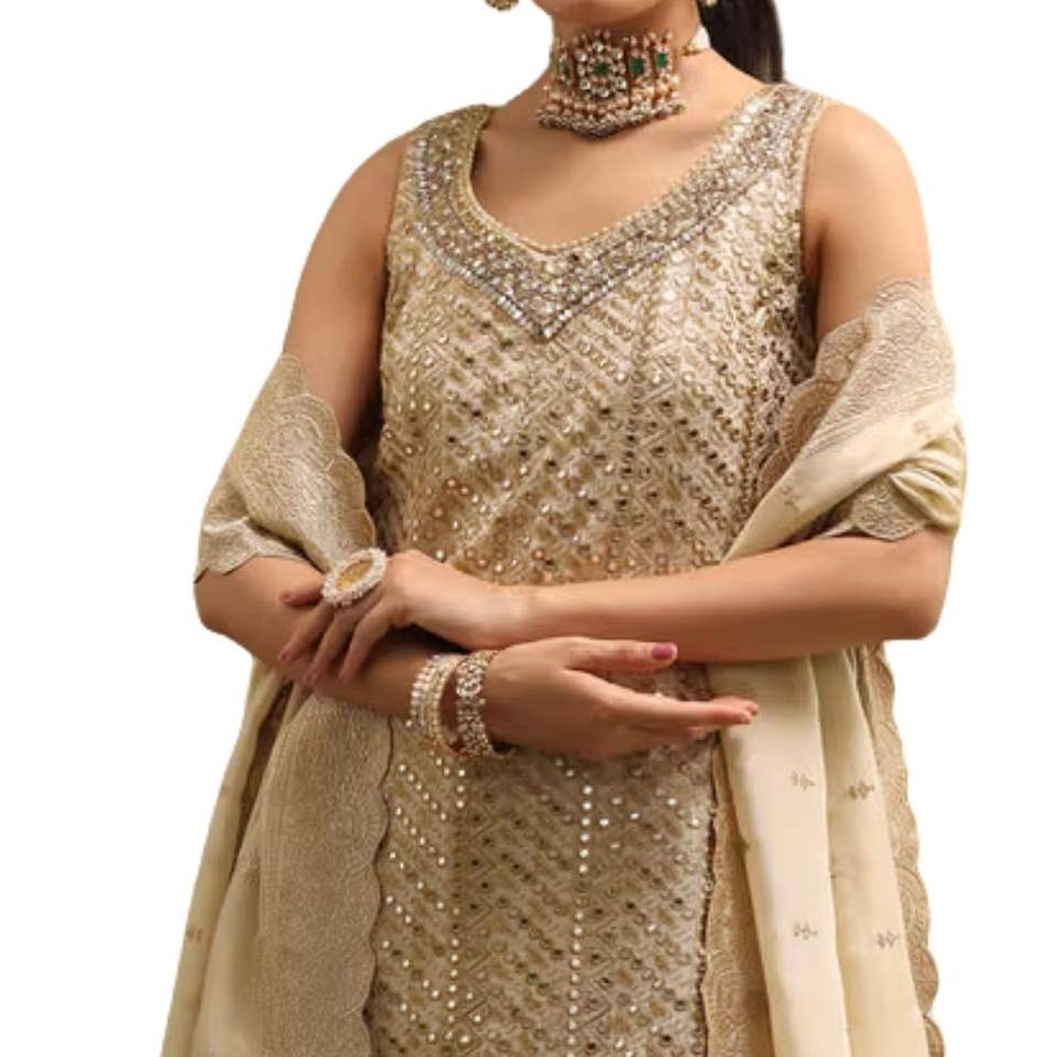 Ivoire brodé Georgette Kurta Sharara ensemble élégant tenue de fête femmes mariage et tenue ethnique festive