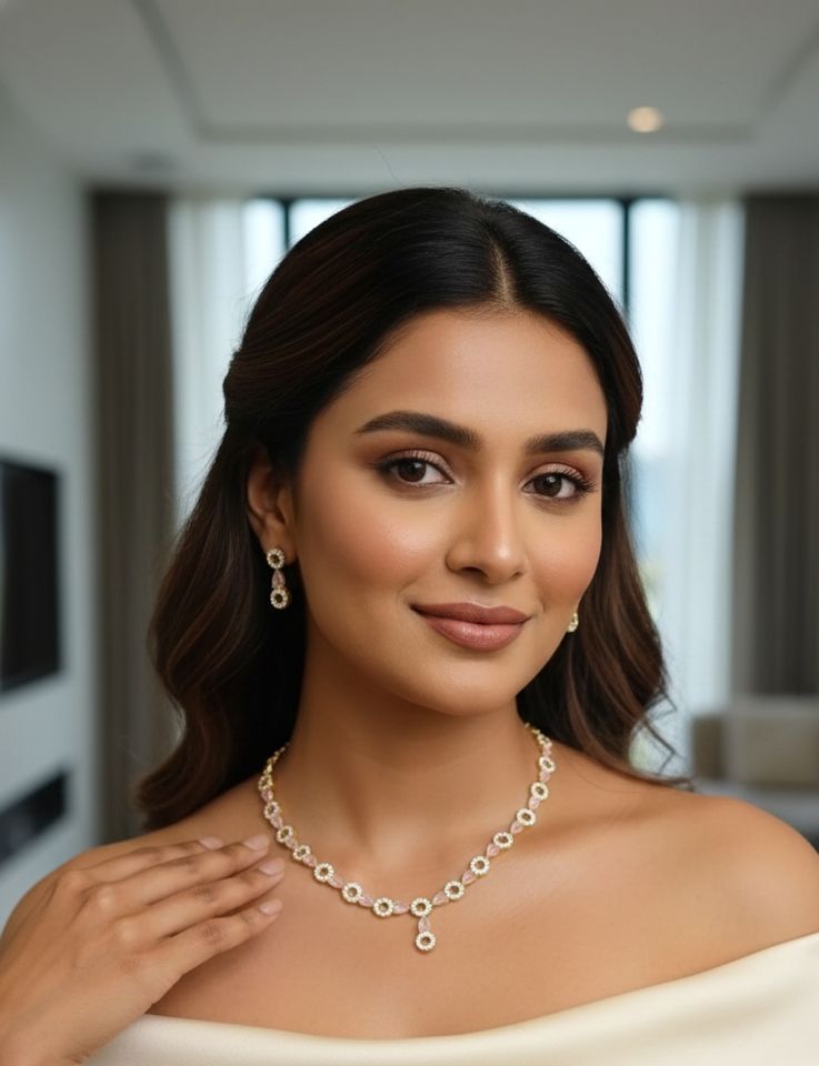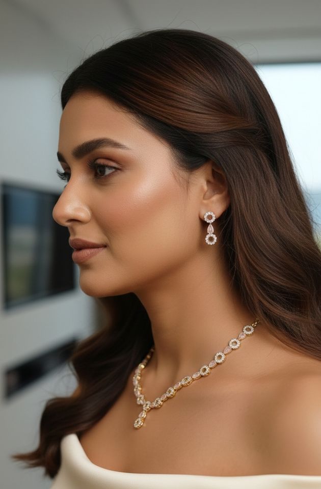 Ivory aura classic sparkle necklace & earrings set made of Premium White Round-Cut Stones