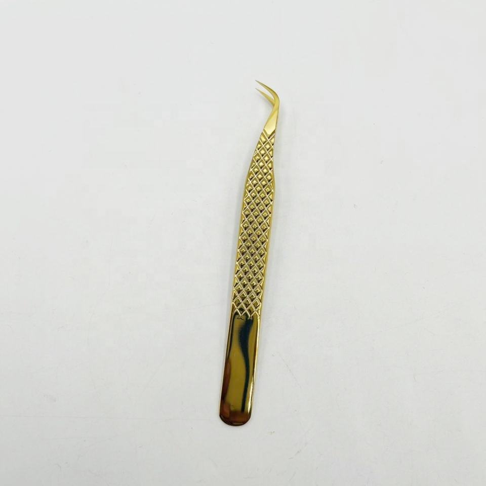 Pince à épiler en or de type J, pince à épiler professionnelle de haute qualité en acier inoxydable pour extensions de cils, poignée diamantée, inclinée, durable