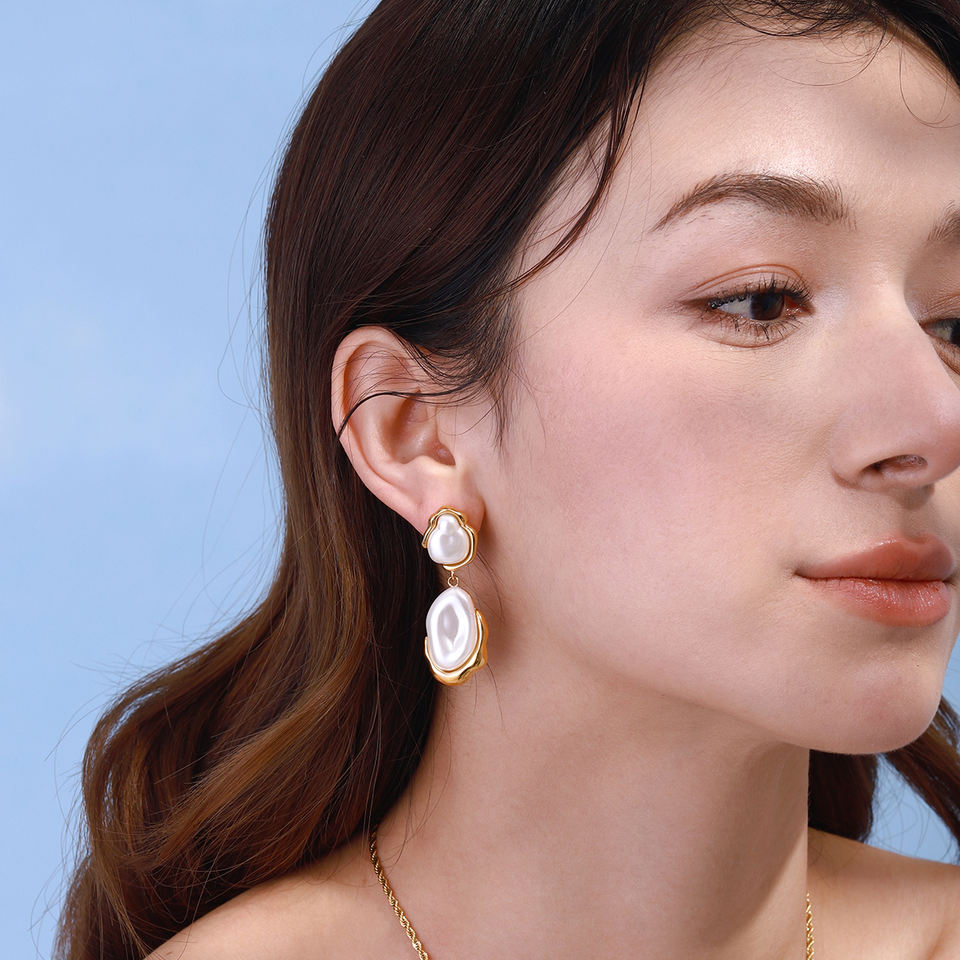 Bijoux J & D en acier inoxydable plaqué or 18 carats, ensemble de boucles d'oreilles et bagues de famille avec imitation perle