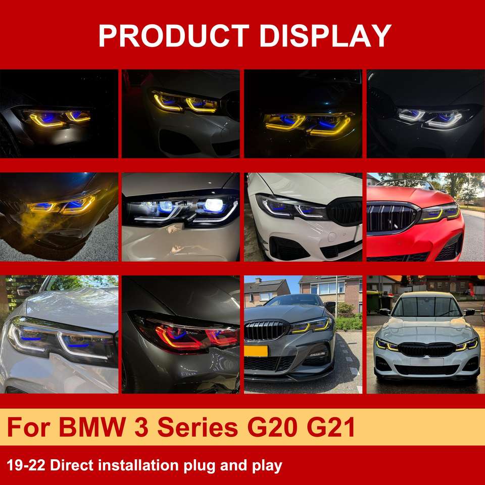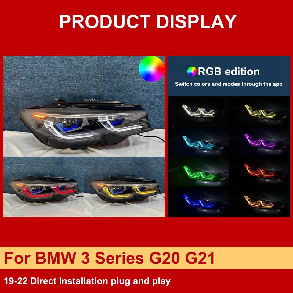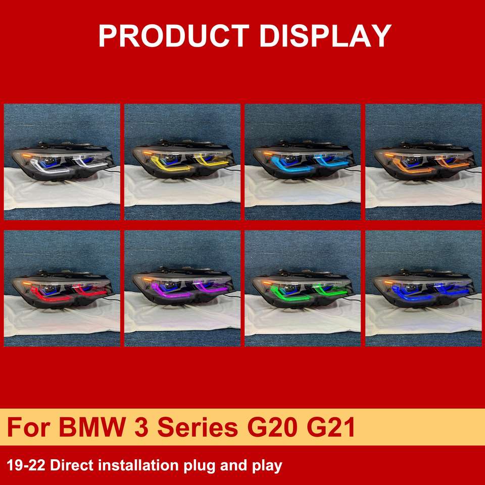 J ONE Phares de voiture à LED RGB à commande par téléphone, très populaires, pour BMW Série 3 G20 G21 2019-2022, phares laser G20