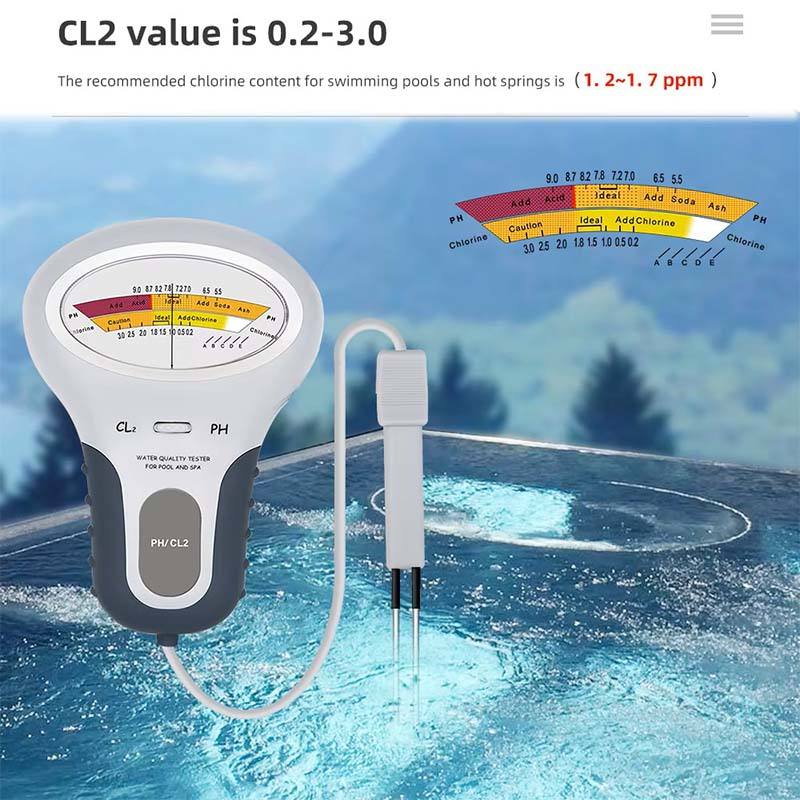 Plage de mesure:PH : 5,5 ~ 9 ; CL2 : 0,2 ~ 3,0