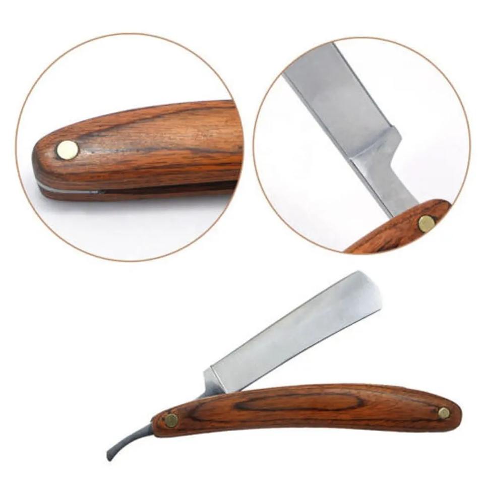 Rasoir de sécurité jetable J2 avec couteau de rasage pliant à bord droit Manche en bois pur Barbers Body Shaving Bar