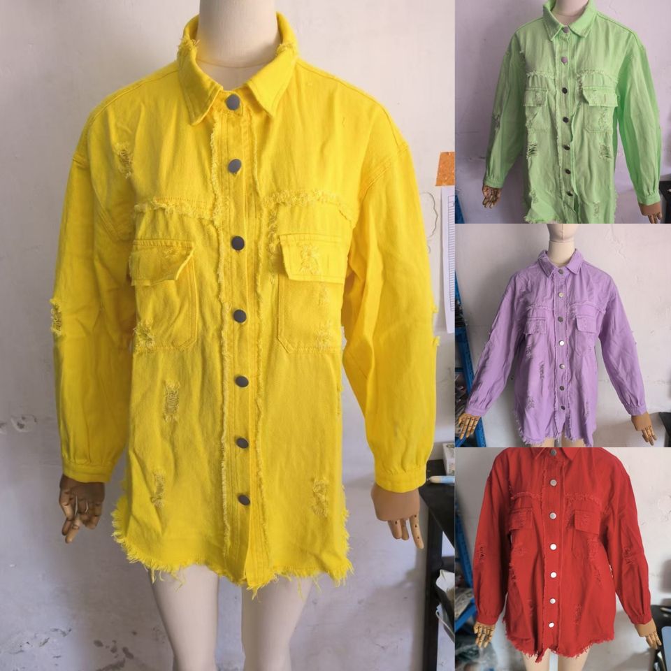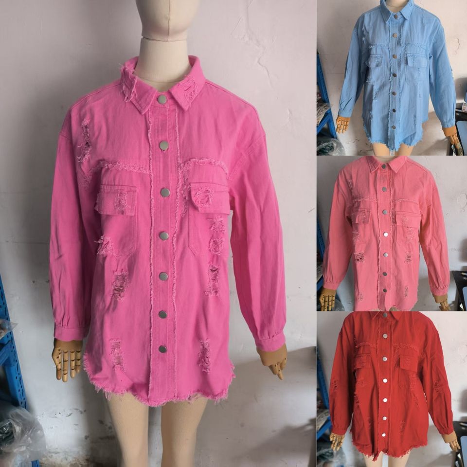 Veste en jean mi-longue J3, dernière collection, tailles S-2XL, avec bords déchirés et trous, pour femme, automne et hiver, manches longues, col à revers, style décontracté