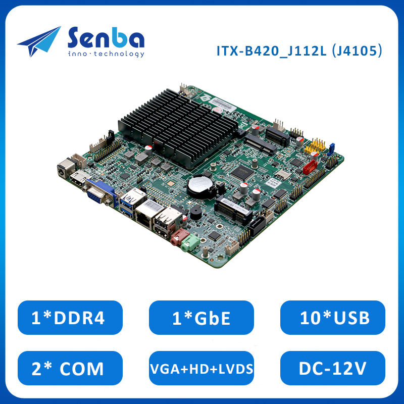 Carte mère industrielle embarquée Mini ITX J4105 DDR4 SIM 10 USB 2 COM PS2 LPT 17 X17 avec processeur