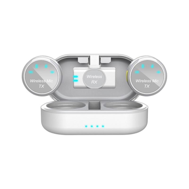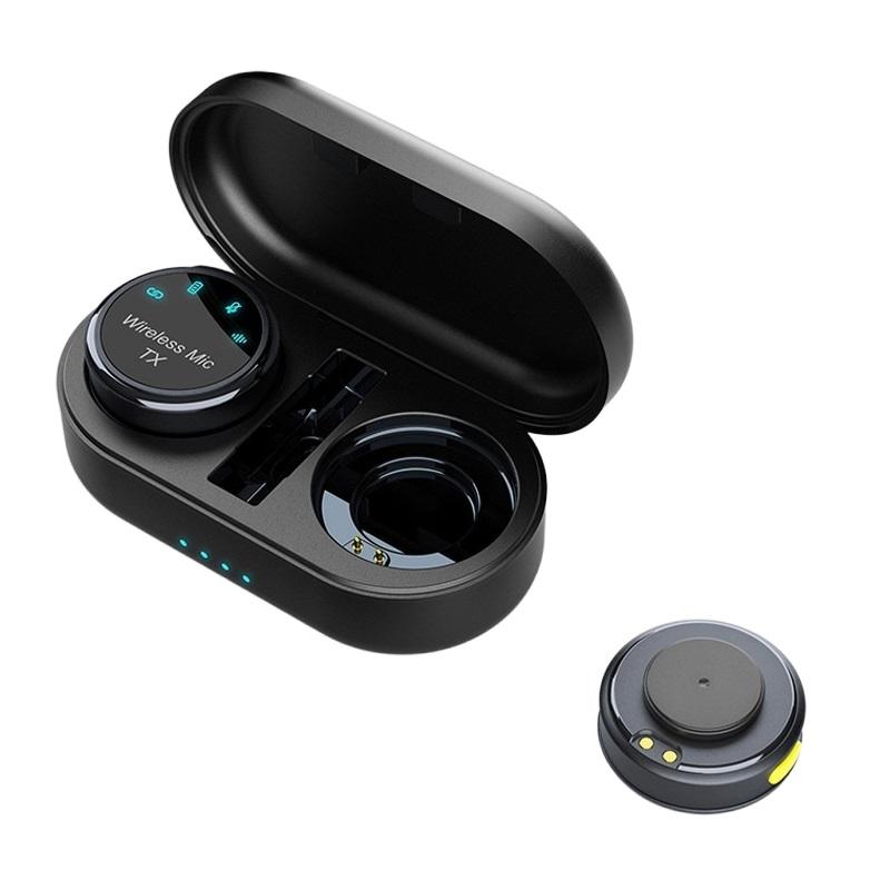 Microphone à pince pour le cou J5 avec boîte de charge ronde, aspiration magnétique, pince pour col, réduction du bruit, 1 pour 2, microphone vidéo pour smartphone en direct