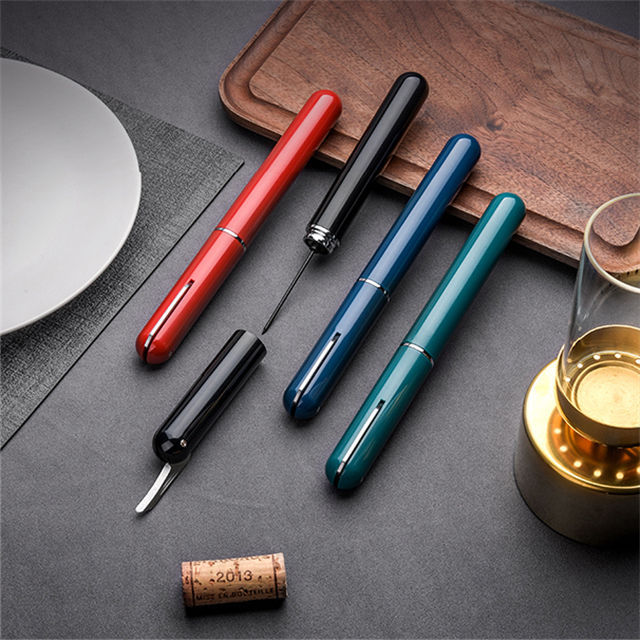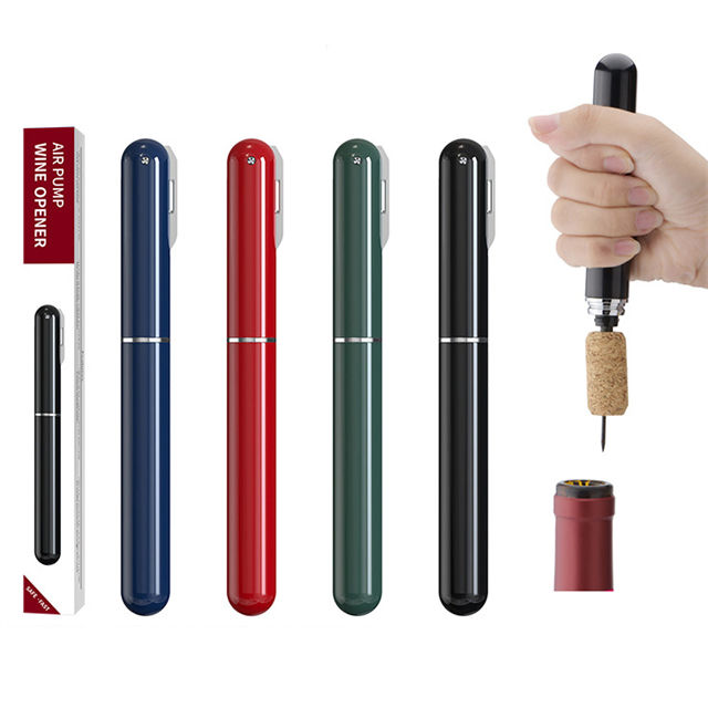 Emballage: sac PP + boîte pour J825 personnalisé Portable pompe à Air pompe à Air en liège décapant à la mode en forme de stylo automatique Mini tire-bouchon pression d'air ouvre-vin rouge