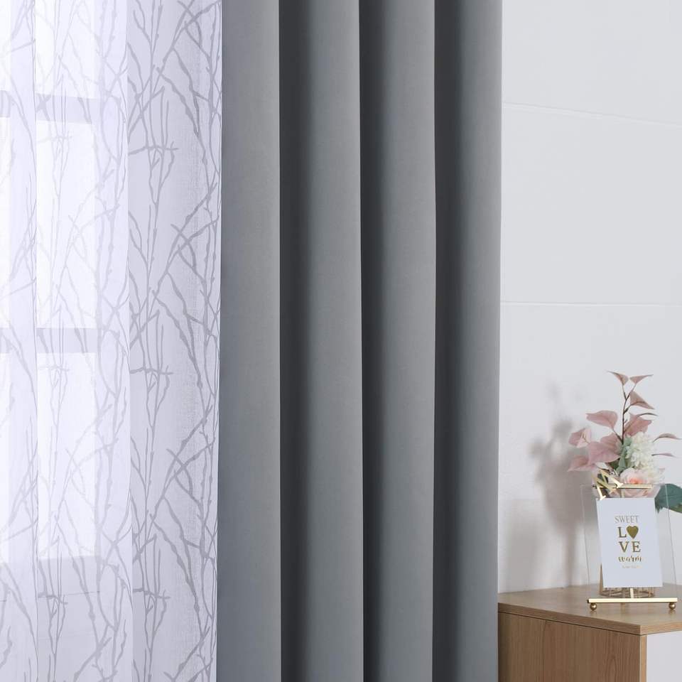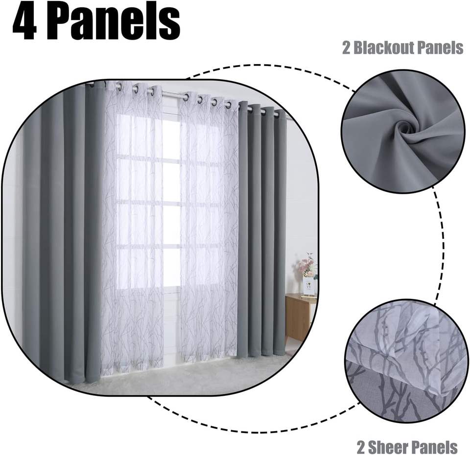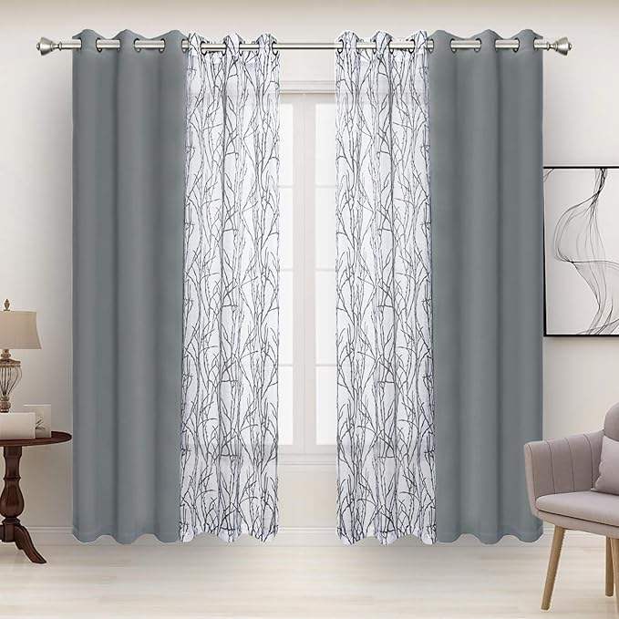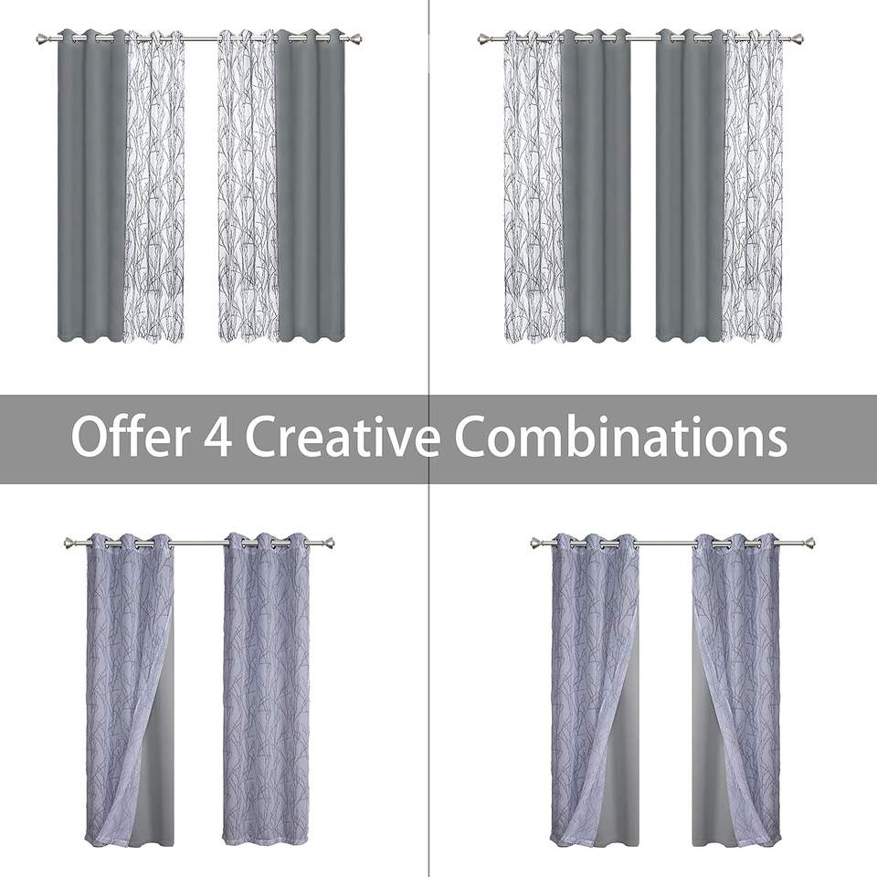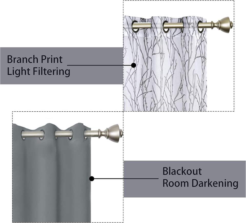 JA-Ensemble de 4 rideaux gris clair de 37x84 pouces assortis, 2 pièces, impression de branches, rideaux de fenêtre occultants pour chambre à coucher