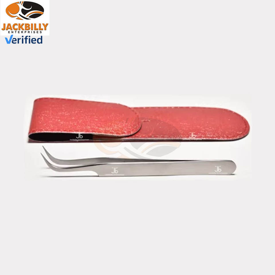 JACKBILLY Pince à épiler incurvée grise à prise en fibre personnalisée de haute qualité pour extensions de cils avec emballage en boîte personnalisé Professionnel