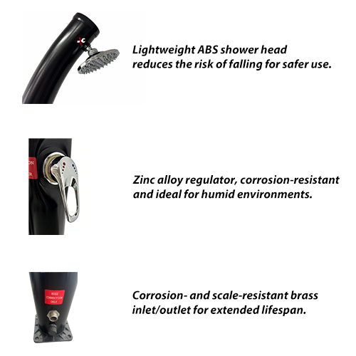 Douche solaire de jardin et de piscine JADE 20L avec lavage des pieds | PVC, double section, pomme de douche chromée de 6 pouces