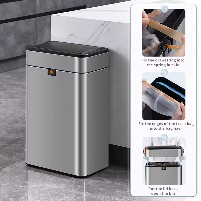 JAH5535D Poubelle d'emballage 60L à double cordon Sac jetable Usage domestique Poubelles intelligentes à induction automatique Plastique Acier