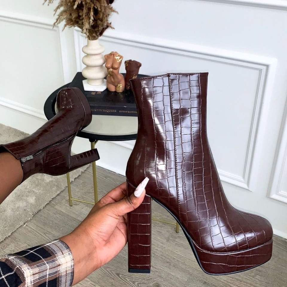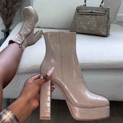 JB010 — bottes à talons compensés, chaussures à plateforme, imprimé faux crocodile, pour femmes