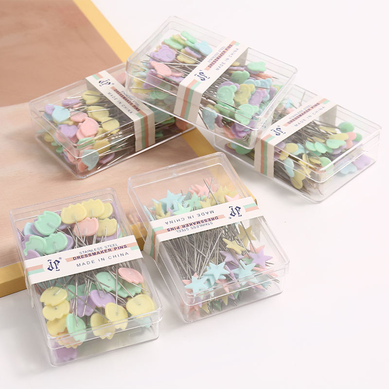 Accessoires de vêtement JC Broche en acier à tête en plastique Diverses formes de goupilles droites à tête plate à coudre colorées