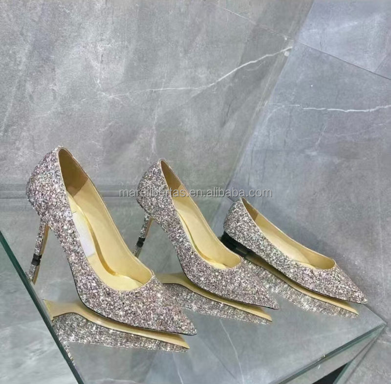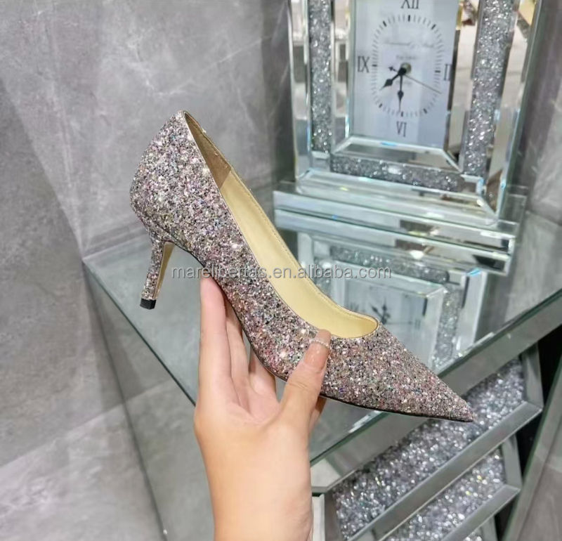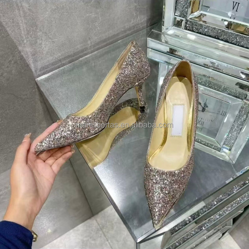 Chaussures à talons hauts JC Top Version, paillettes colorées, cuir de mouton véritable, semelle extérieure en cuir italien, 6,5 cm, Jimmyschoo