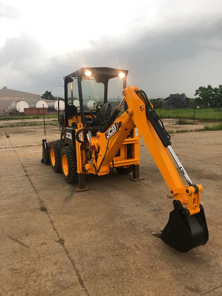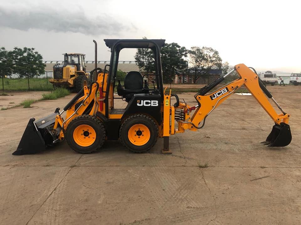Chargeuse-pelleteuse compacte JCB 1CX avec hydraulique Huade, polyvalente et haute performance, en stock, prête à être expédiée