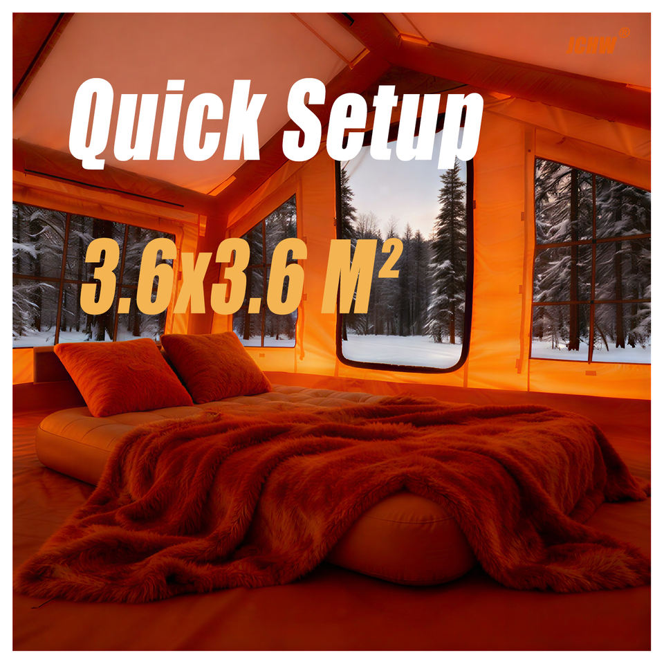 Tente gonflable d'hiver JCHW 2026 - 600D PVC épaissi, imperméable et portable, camping avec installation rapide et facile, 12,96 m², coffre de voiture