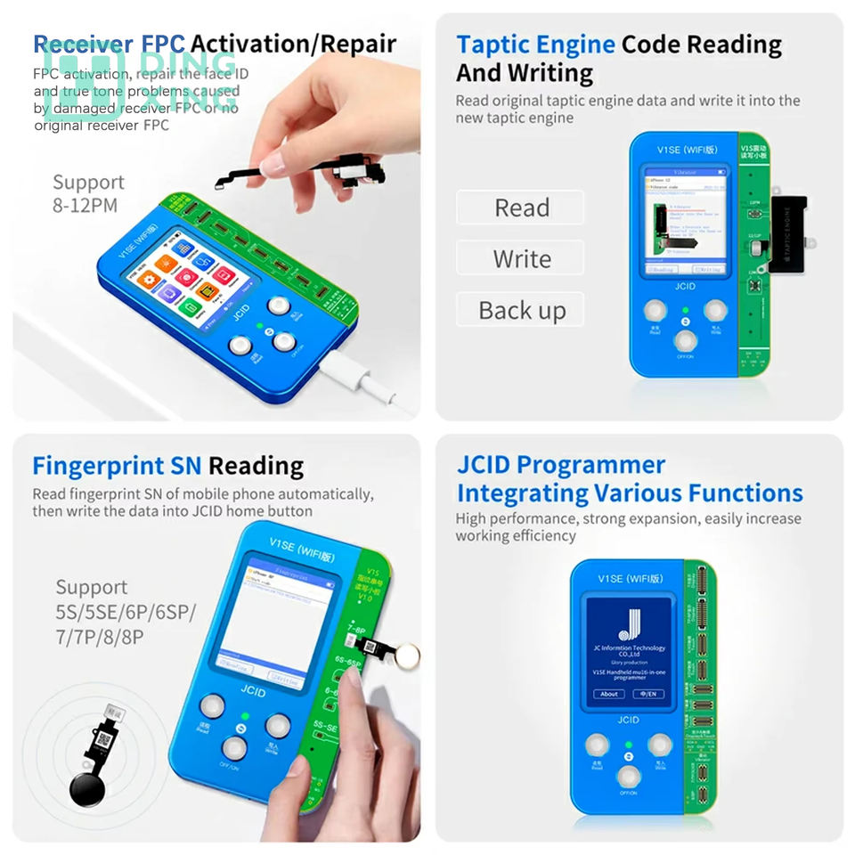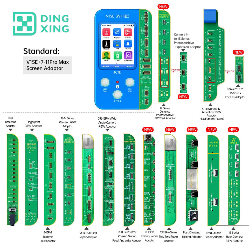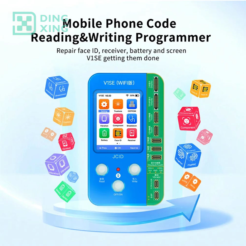 Programmeur de données de batterie JCID V1SE JC pour iPhone X XS Max 12 13 14 15 Pro True Tone, lecteur d'empreintes digitales, projecteur de points, en métal, AC