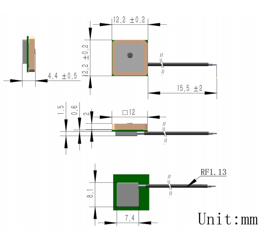 Antenne patch active GNSS en céramique pour véhicule, polarisation RHCP, pôle normal, mini GPS, JCN528, 12*12 mm