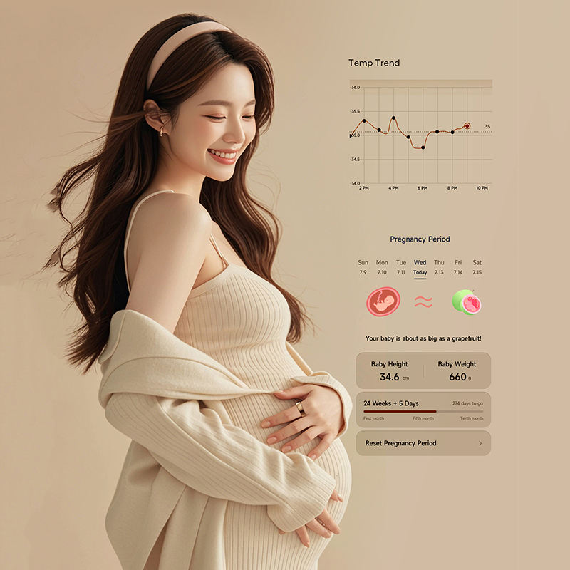 Fonction:Traceur de calories, Traqueur de Distance, Rappel sédentaire, Suivi de la grossesse, Multiport Tracker, Gestion menstruelle, Activité Tracker, Tendances de température, Sommeil, Détection d'oxygène dans le sang, 24 hora instruction, Pisteur fitness, Fréquence cardiaque Tracker, Rechercheur d'humeur