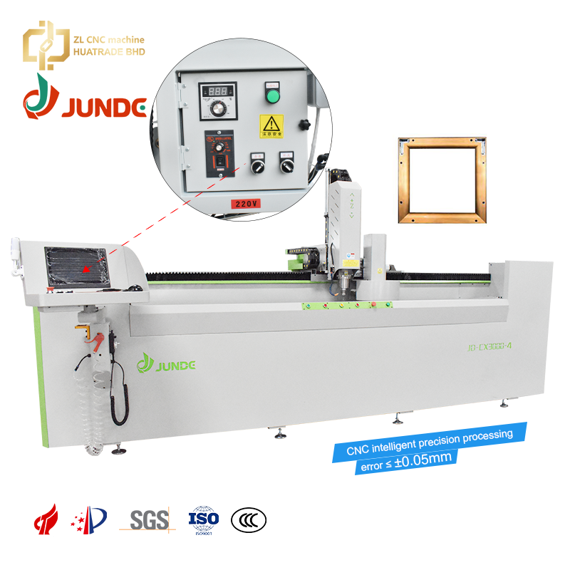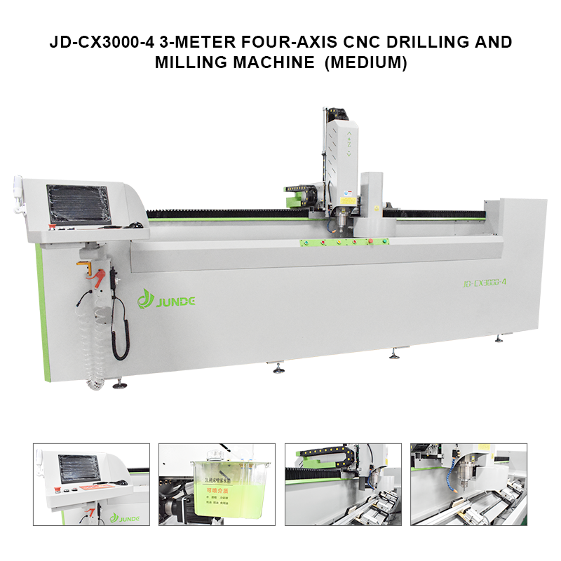 Machine de fraisage CNC 4 axes JUNDE, déplacement de table axe X de 3 m, changeur d'outils automatique, magazine de 8 outils, changement d'outils en 6 secondes, lubrification automatique