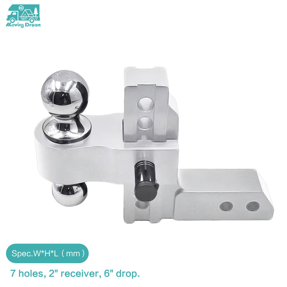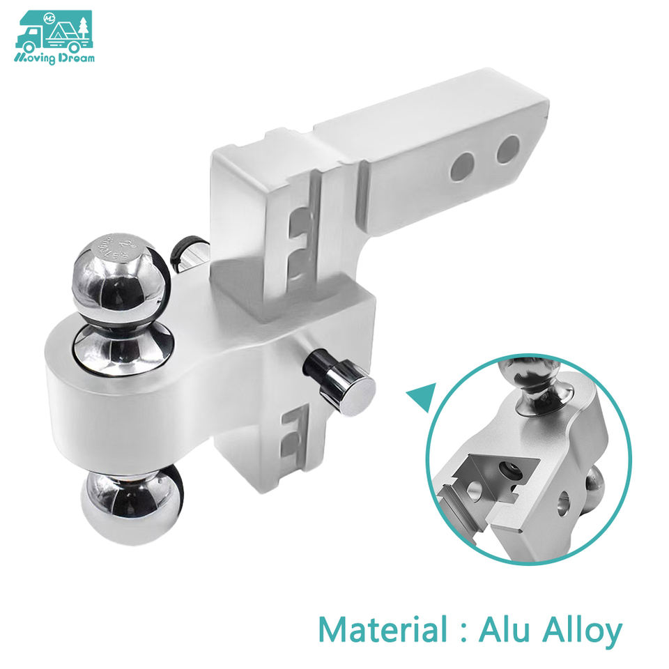Attelage de remorque réglable en alliage d'aluminium JDA de 6 pouces, compatible avec un récepteur de 2 pouces, avec deux goupilles antivol pour VR
