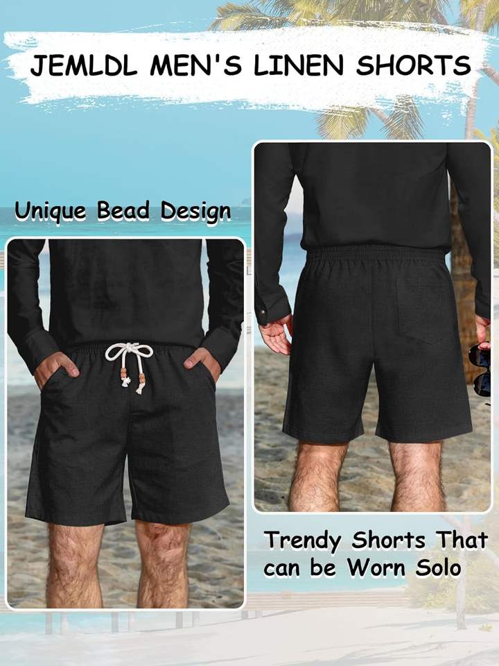 Ensemble décontracté 2 pièces JEMLDL pour homme en fibre de bambou 100 %, chemise Henley cubaine à manches longues et short, tenue d'été pour les vacances à la plage