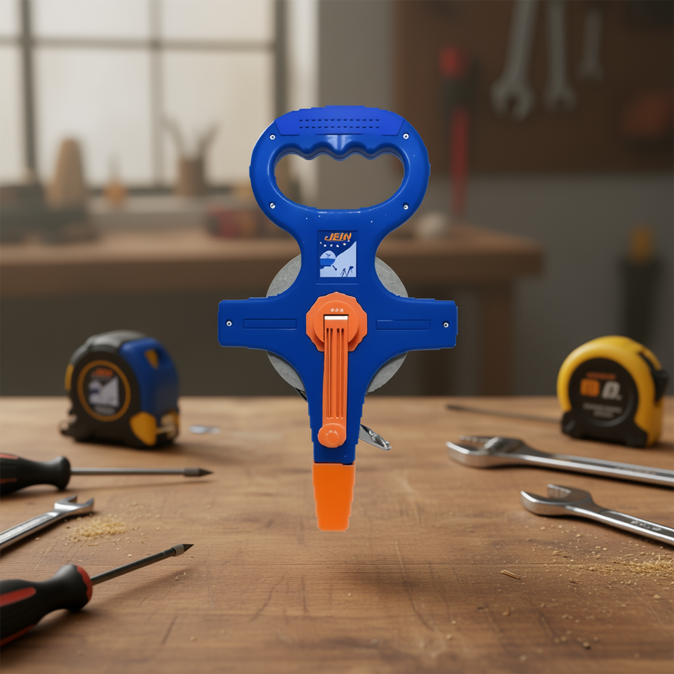 Ruban à mesurer rétractable JEN 15M, retour automatique, verrouillage manuel, coque en plastique ABS, lame en fibre de verre, graduation métrique