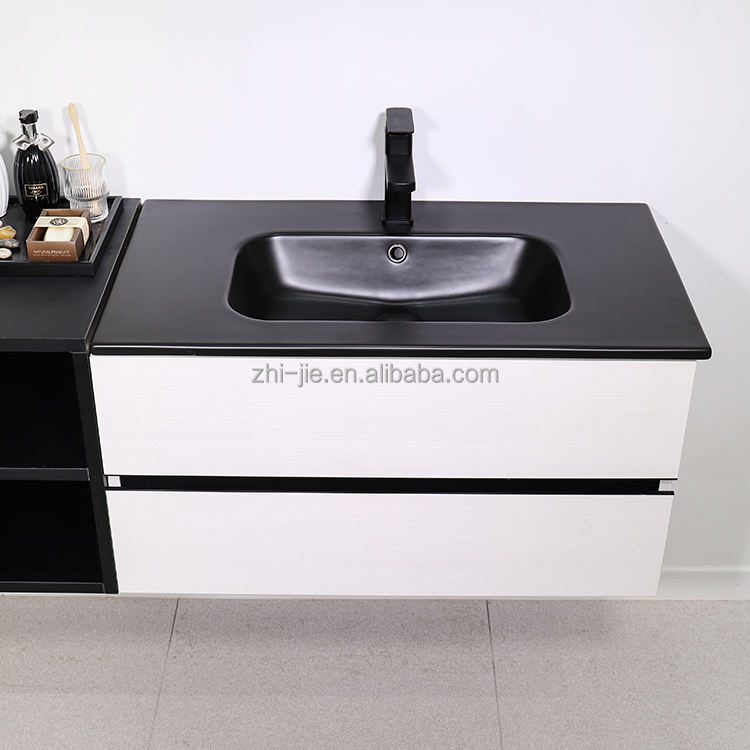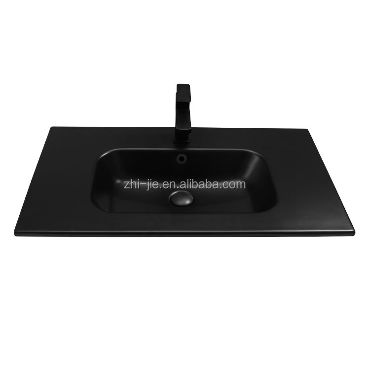 JETMAN Lavabo en céramique noir mat Lavabo à main Ensemble de lavabo de salle de bain Lavabo avec armoire