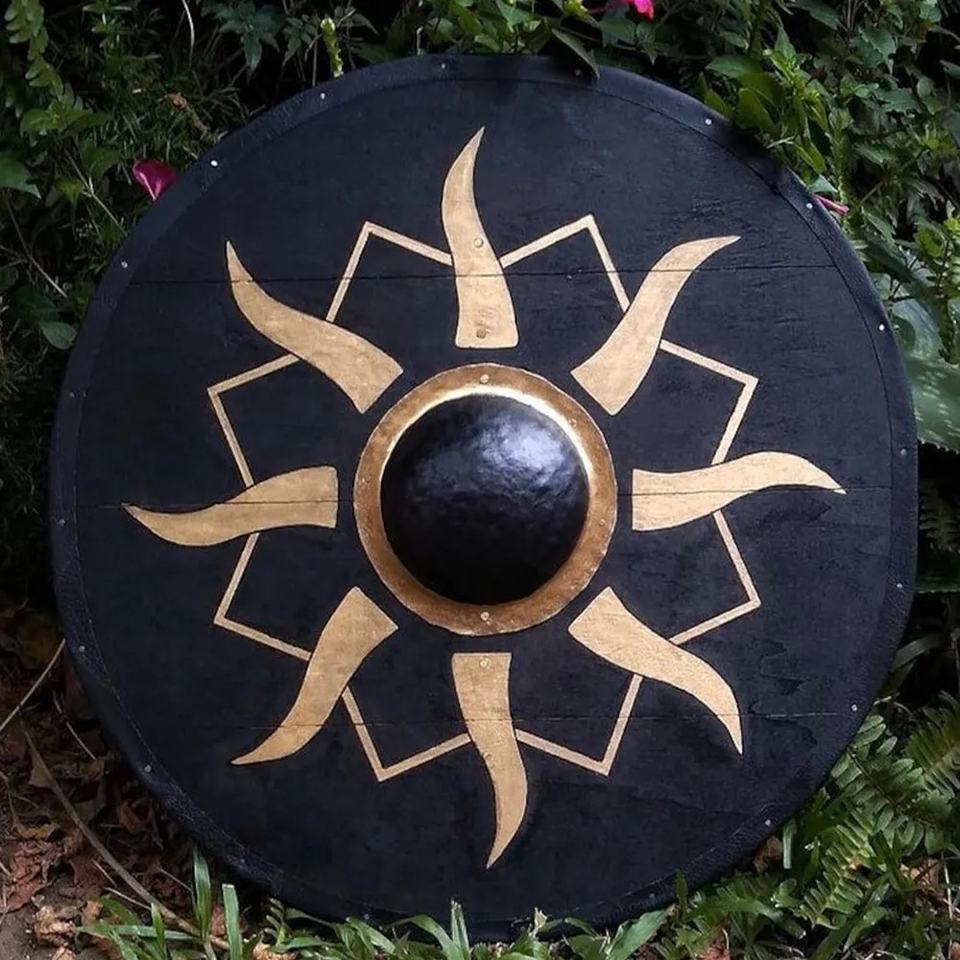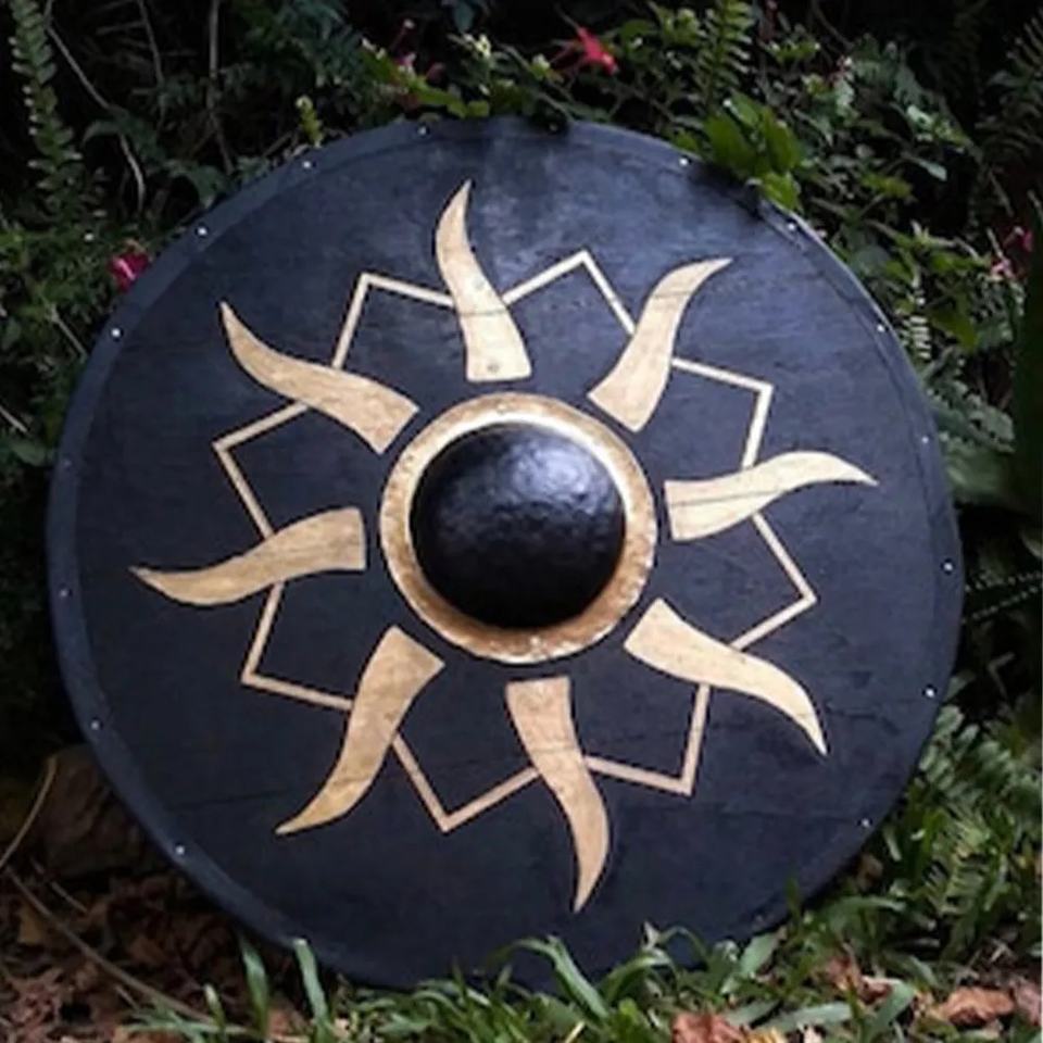 JEXMOO Bouclier Viking artisanal de 24 pouces en bois et acier à haute teneur en carbone, design de la tige centrale, avec support de personnalisation et de compatibilité