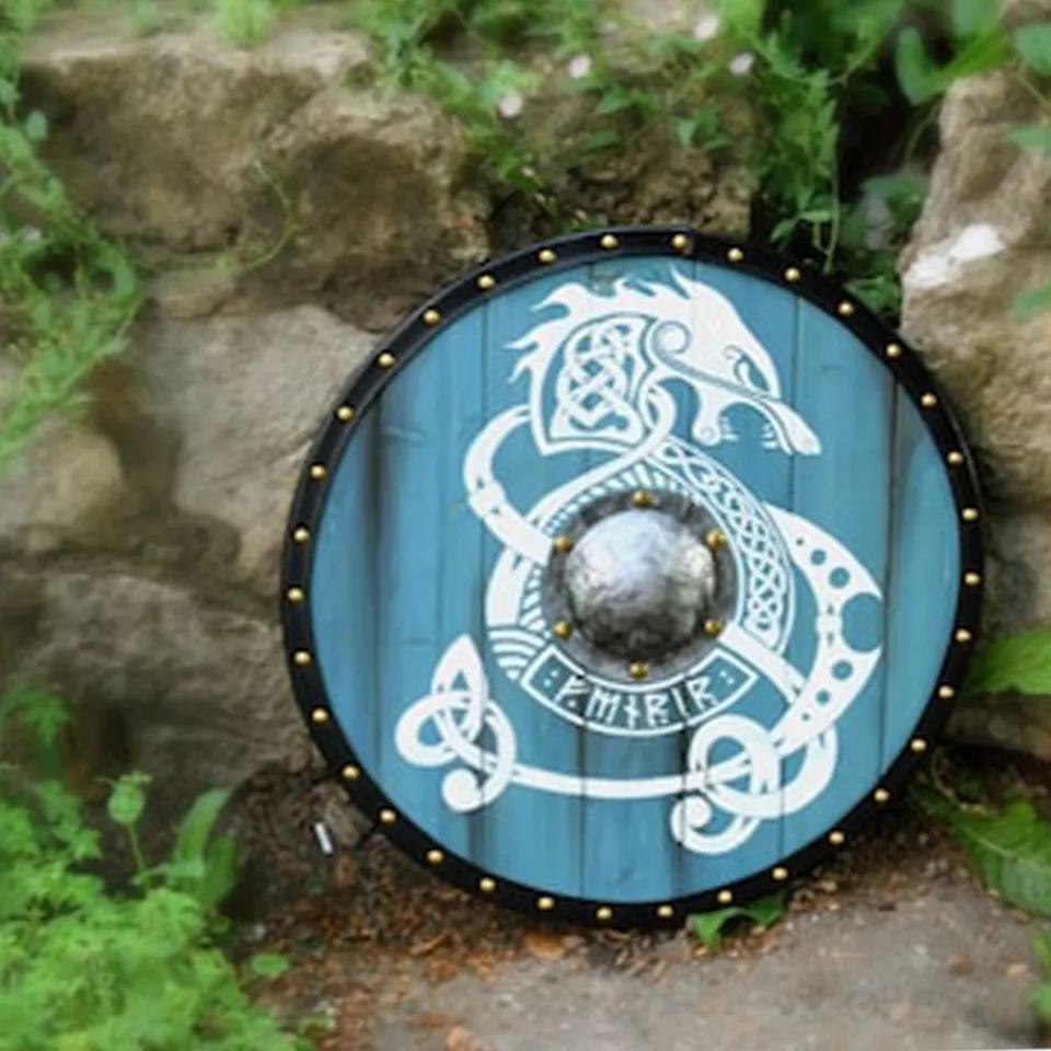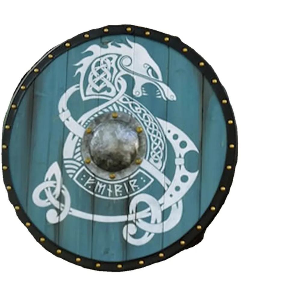 JEXMOO Bouclier Viking artisanal de 24 pouces en bois et acier à haute teneur en carbone, design de la tige centrale, avec support de personnalisation et de compatibilité