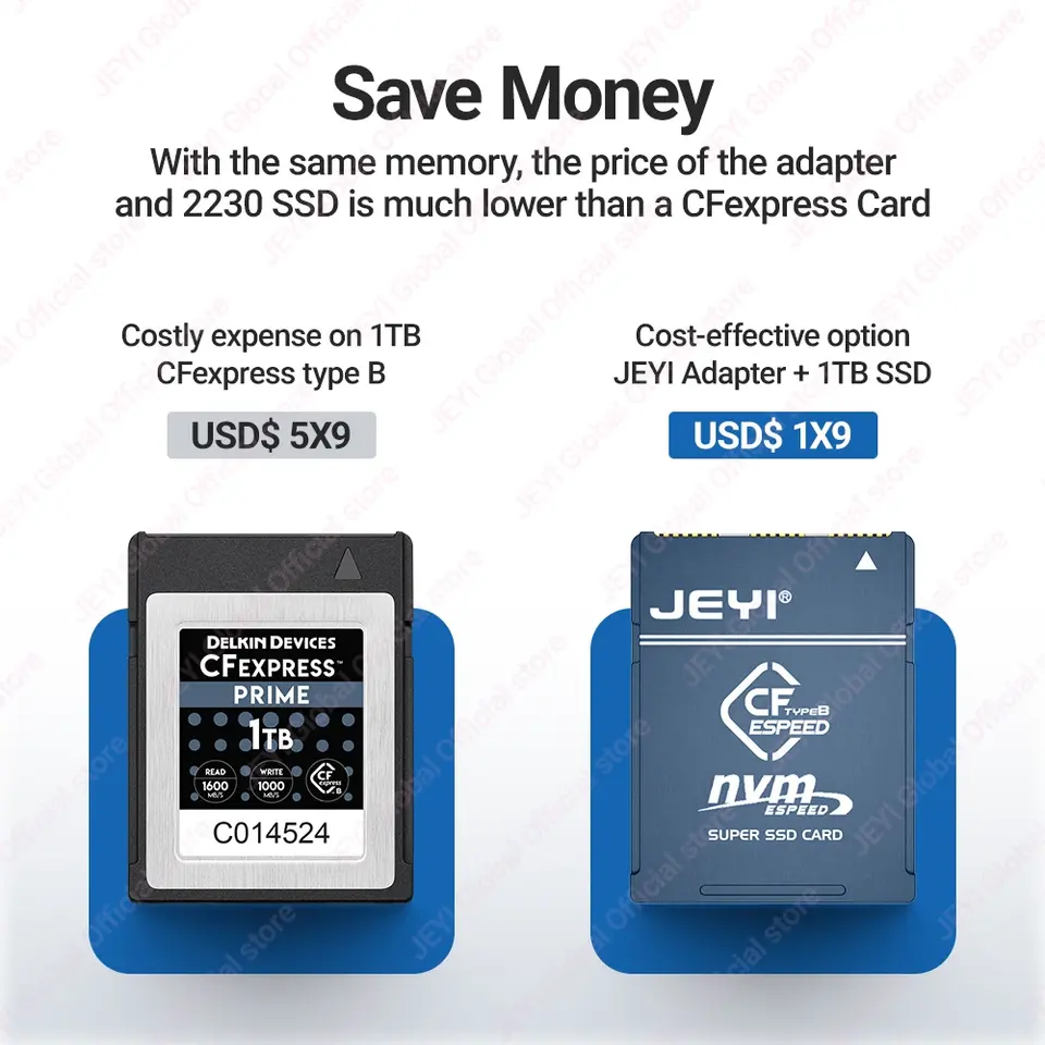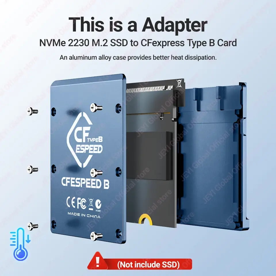 Adaptateur JEYI CFexpress Type B vers M.2 2230 NVMe SSD, carte mémoire d'extension PCIe 4.0 pour Canon Nikon Z9 Z7 Z6 R3 R5 OEM