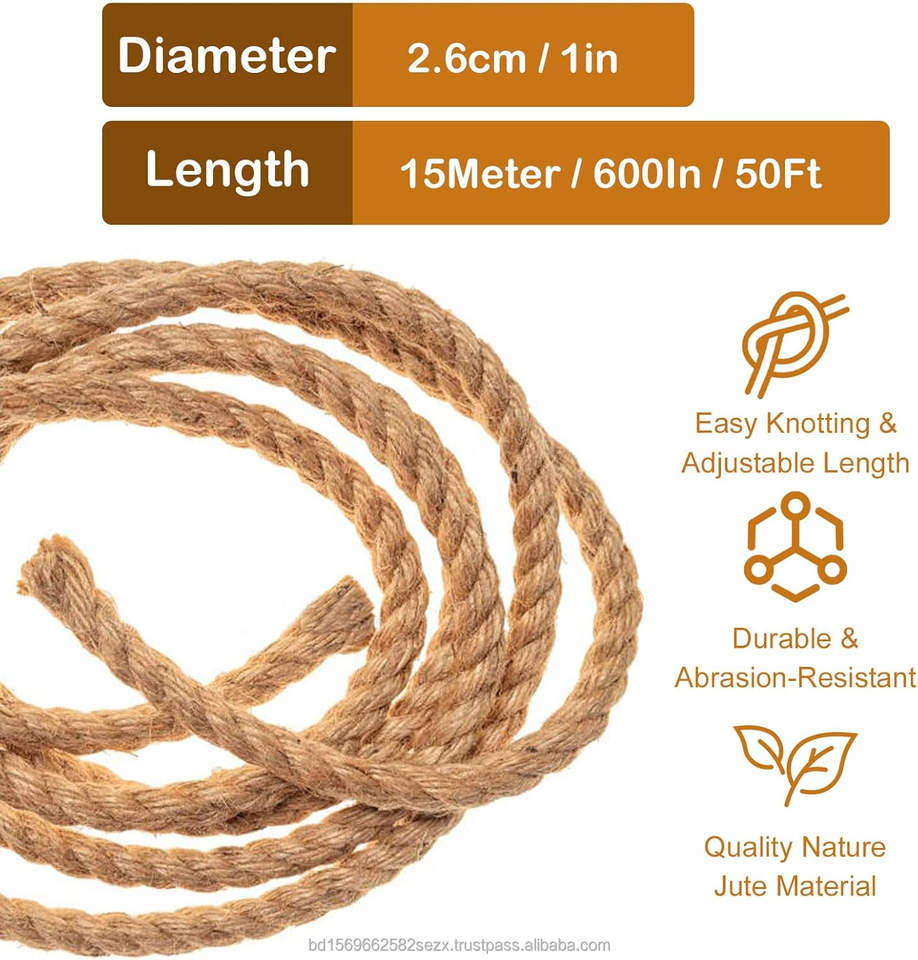 Product name:Thick Twisted Manila Ropes 1inchx50ft Natural Jute Rope Heavy Duty