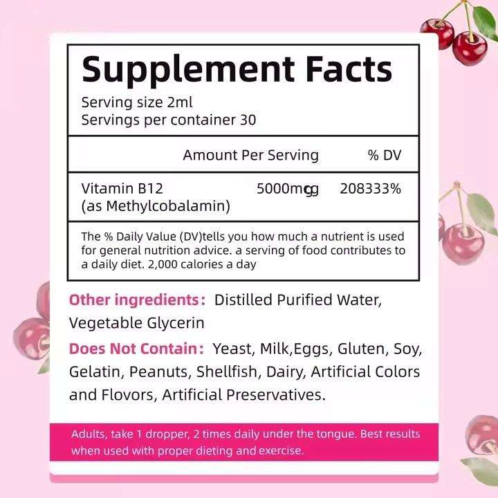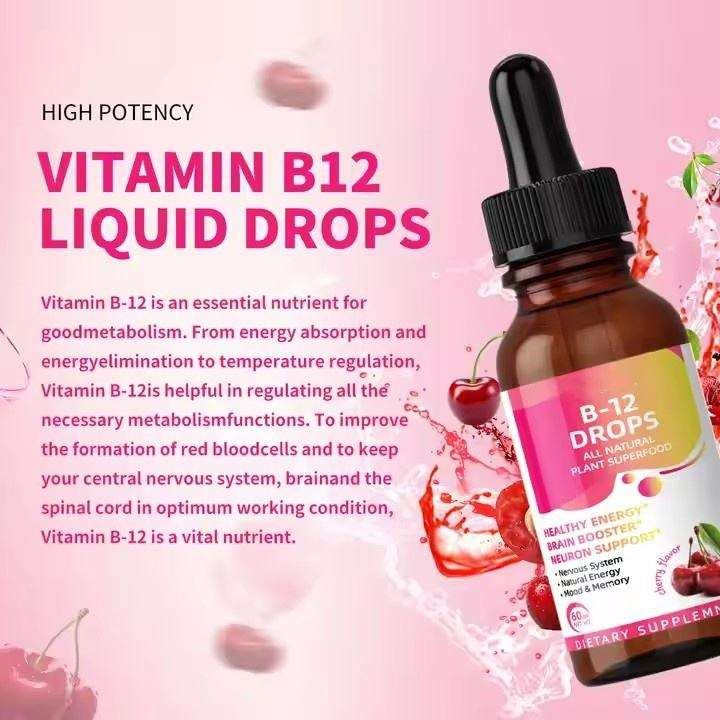 Gouttes liquides orales de vitamine B12 personnalisées JH Factory pour adultes et enfants, sans OGM, sans gluten, faciles à utiliser, sûres