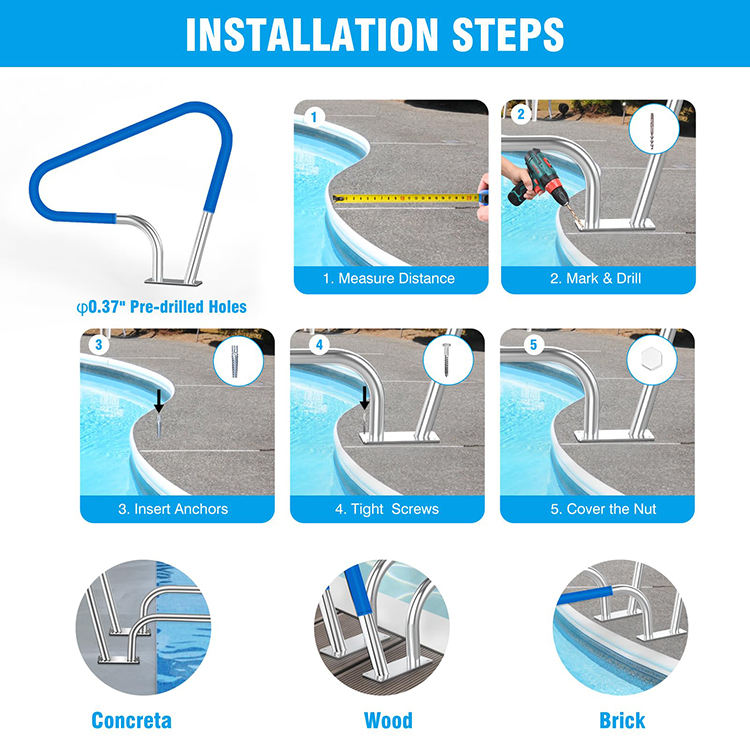 Conception JH-Mech Large application Belle courbe Durable et robuste Couverture antidérapante incluse Main courante de piscine