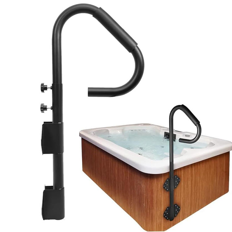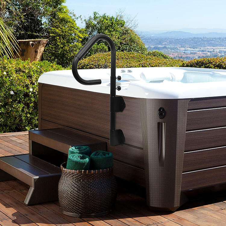JH-Mech Rail d'appui pour piscine facile à installer avec poignée en caoutchouc éponge Main courante en acier inoxydable noir pour bain à remous extérieur