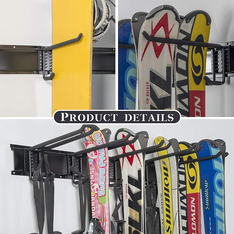Support mural pour skis JH-Mech, 10 paires de supports pour skis, abri de maison et garage, peut contenir jusqu'à 300lb, organisateur d'outils de jardinage en métal, support mural