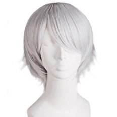 JHP290TU _ 51C5 perruque Cosplay argentée à rayures courtes dentelle avant en fibre haute température dentelle blanche matériau en fibre chimique de haute qualité