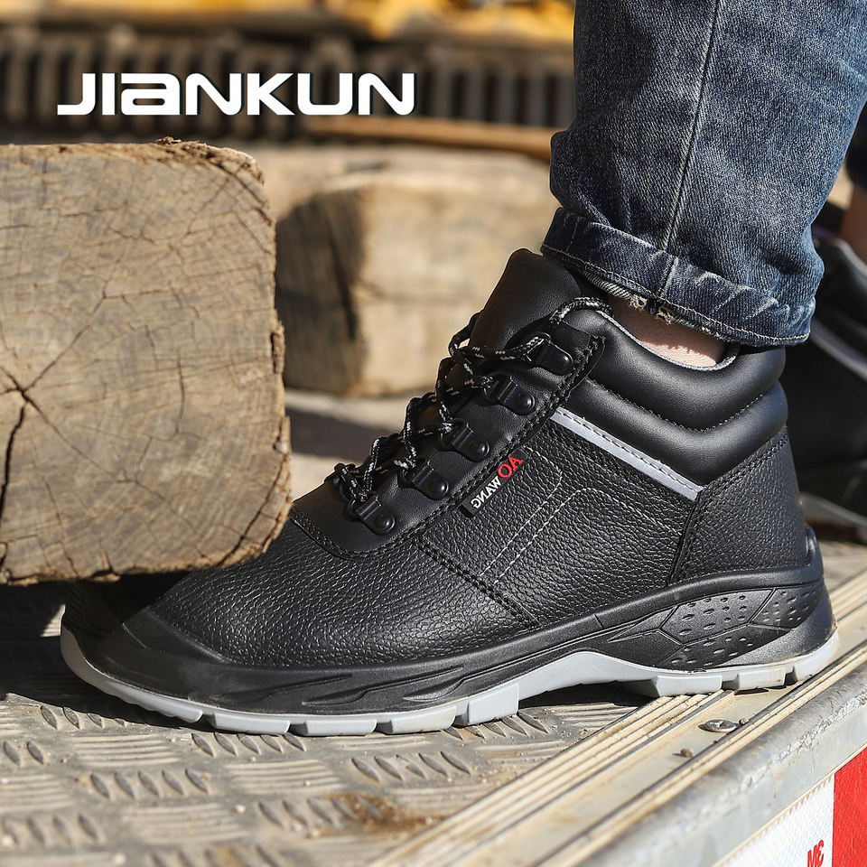 JIANKUN-AW SBP hommes travail chaussures de sécurité Anti-smash Anti-crevaison peau de vache en relief supérieur PU semelle extérieure nouveau acier orteil travail bottes de sécurité
