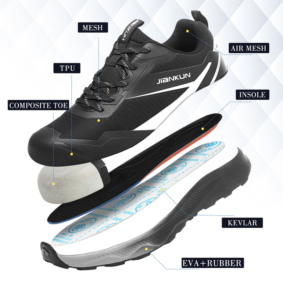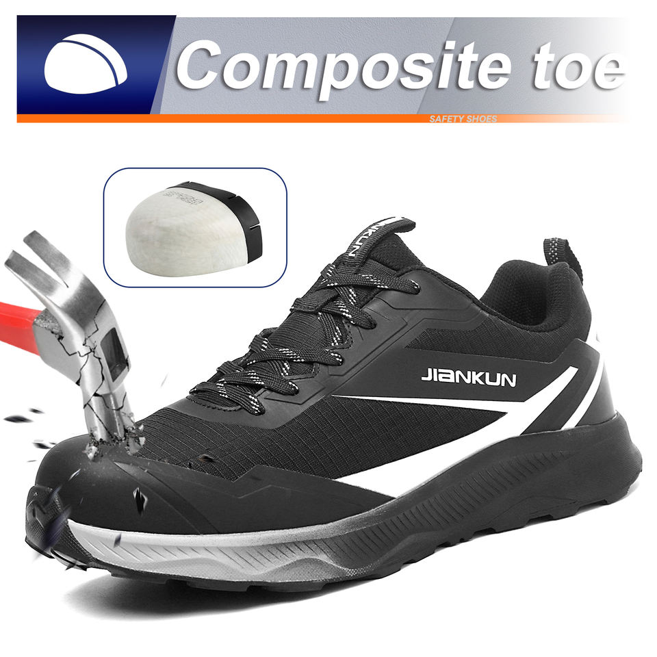 Bottes de Travail JIANKUN Légères Anti-Perforation avec Semelle Intermédiaire EVA+CAOUTCHOUC, Chaussures de Sécurité Basses Anti-Écrasement à Embout Composite pour Hommes en Usine