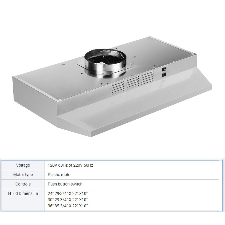 Hotte de cuisine électrique JILU en acier inoxydable à encastrer sous l'armoire avec débit d'air élevé (21 m³/min) pour usage domestique et OEM/ODM