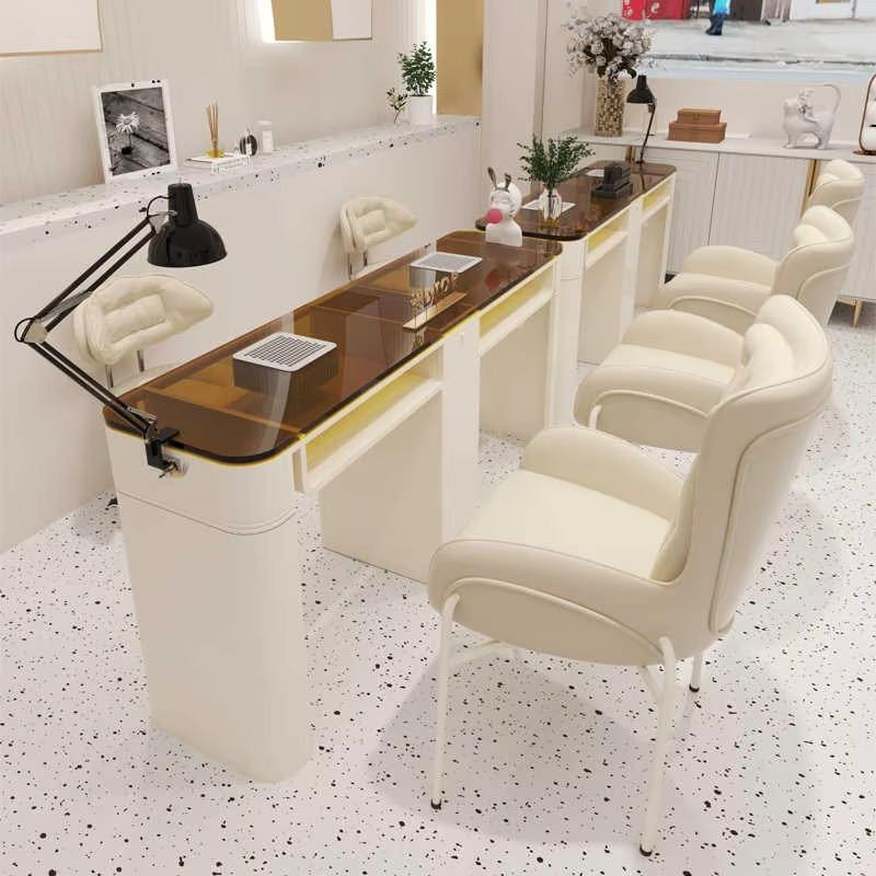 JINCHENG Table de manucure en fer simple, ensemble de table en verre brun, table de manucure adaptée aux esthéticiennes